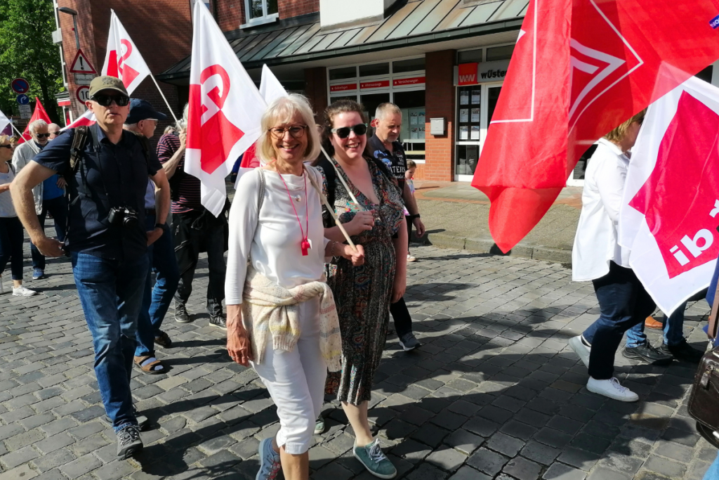 1.-Mai-Demonstration in Emden mit Vertreterinnen der Gewerkschaft Erziehung und Wissenschaft